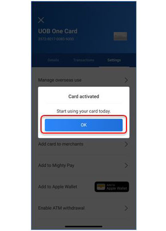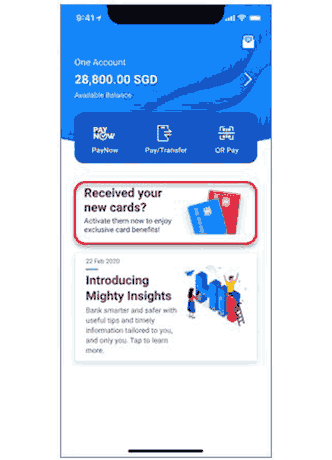 - Login into UOB Mighty app and tap on the Card Activation Insights card
